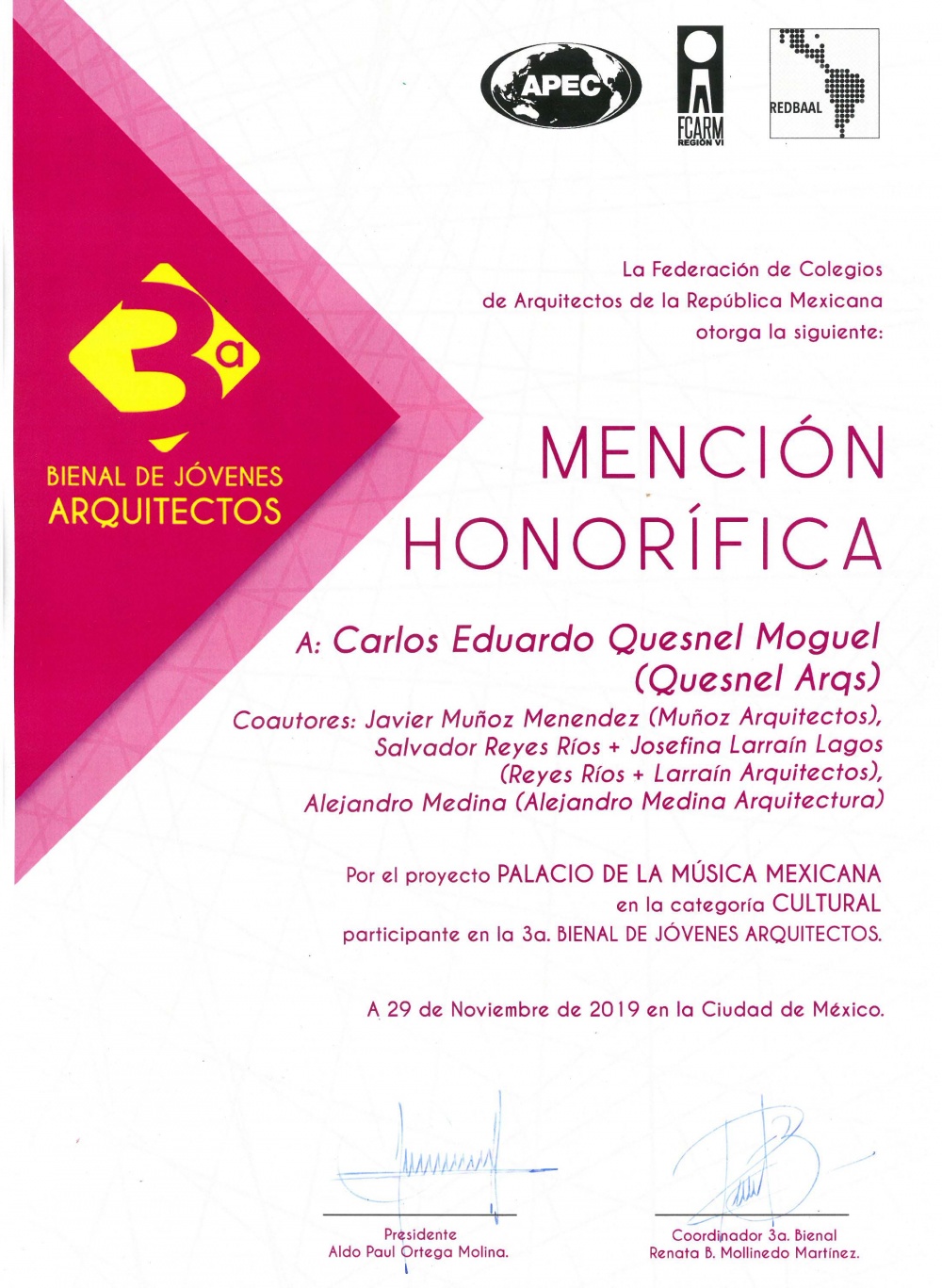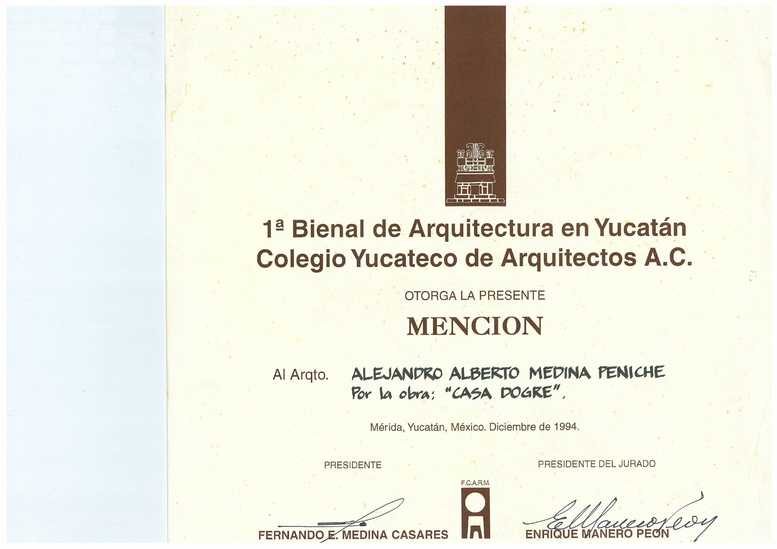 1st Place in Trade, III Biennial of Yucatecan Architecture.