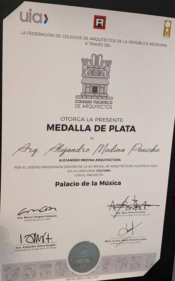 I was a project and thesis workshop professor at the Universidad Marista de Mérida for 18 years and president of the Colegio Yucateco de Arquitectos, for which I received recognition for my outstanding guild work in favor of the development of architecture in January 2020.