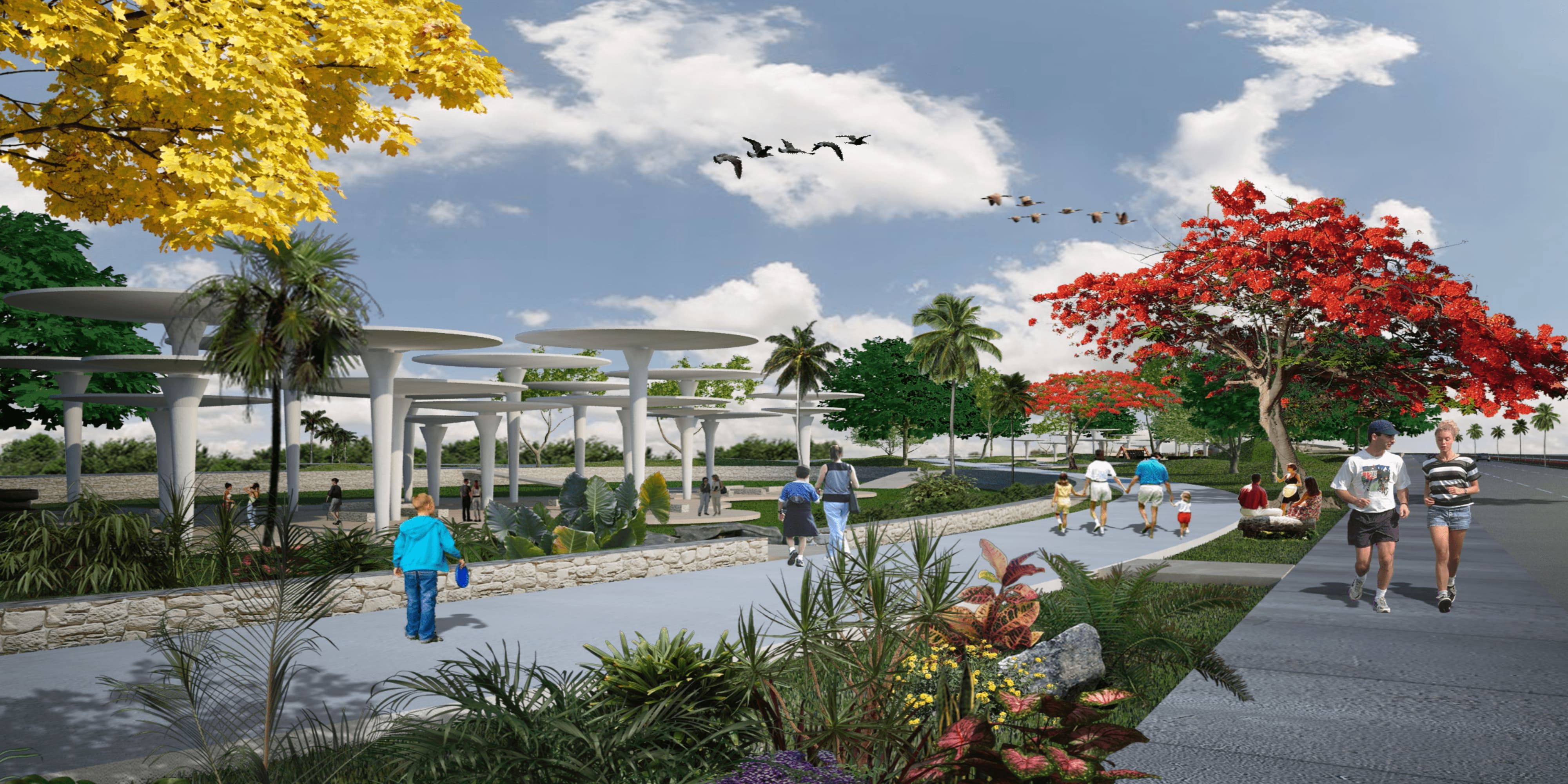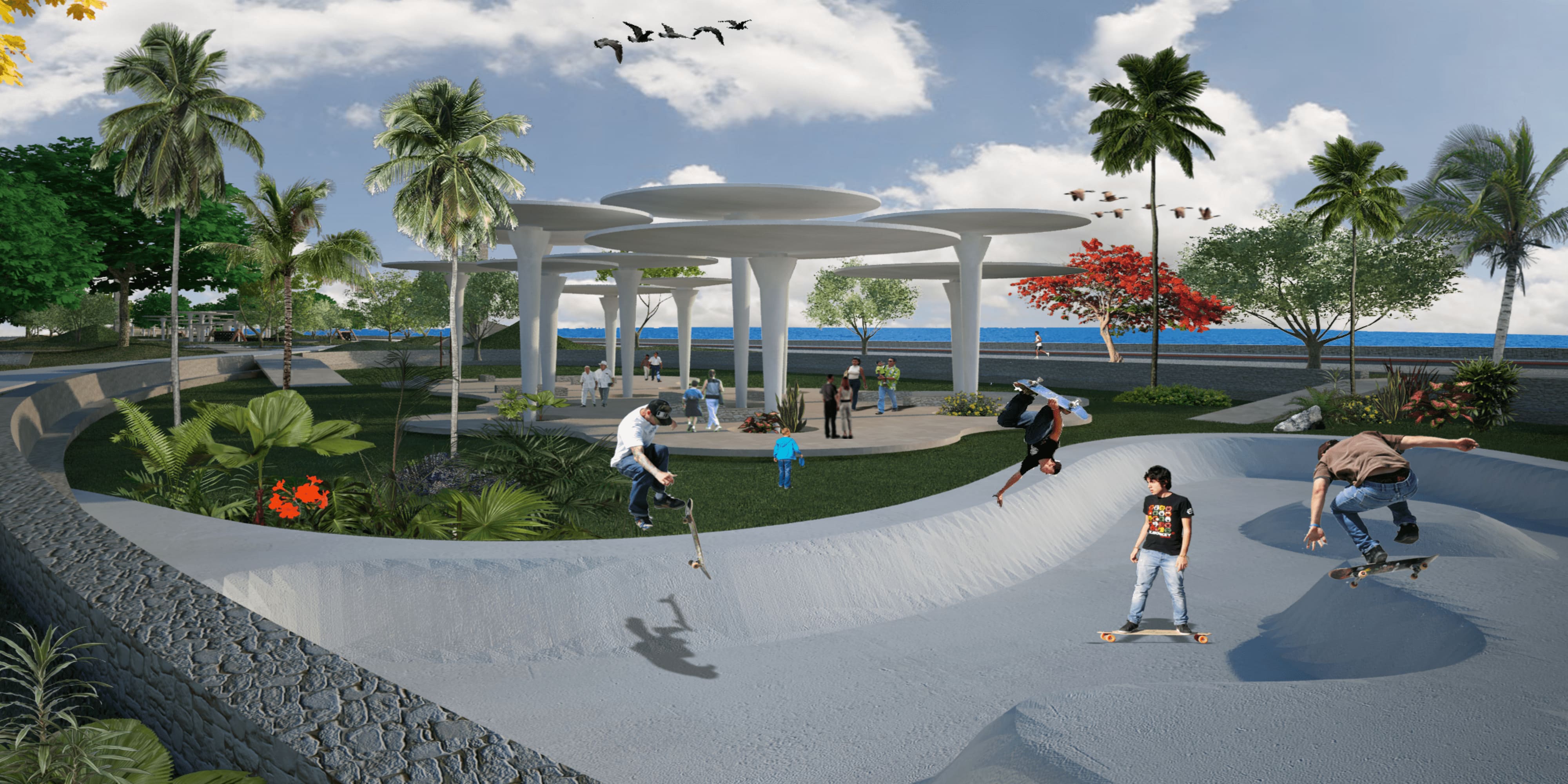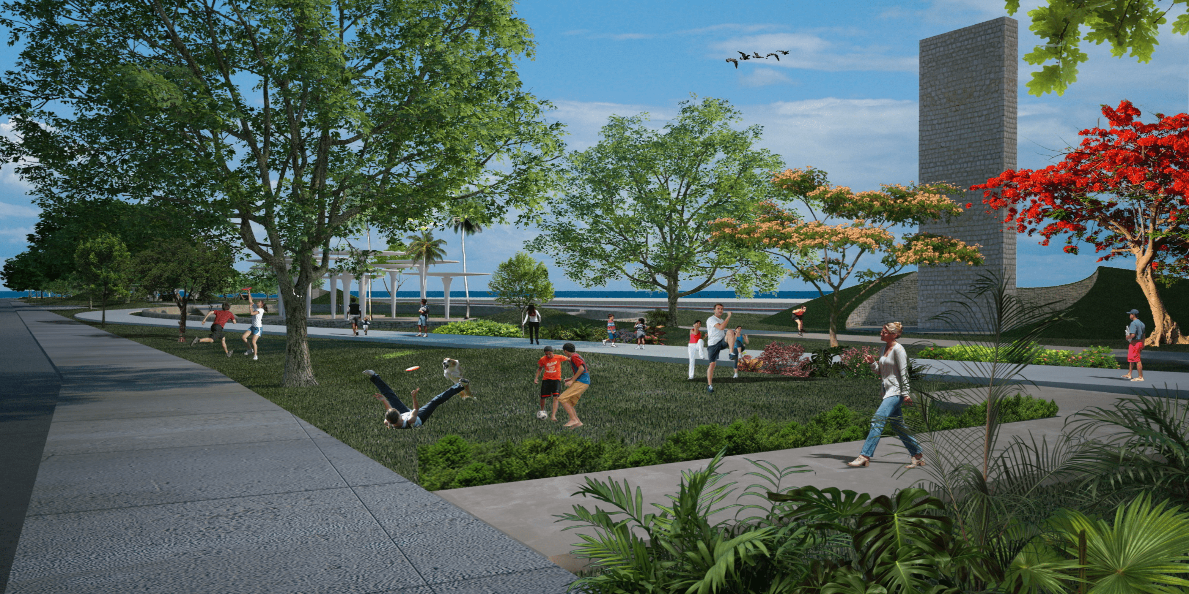 Proposal based on gaining ground to the sea and thus create a place of recreation by creating different environments, including a concert venue, lake for rowing, park and stelae illuminated with projectors for the dissemination of tourism in the state of Campeche.