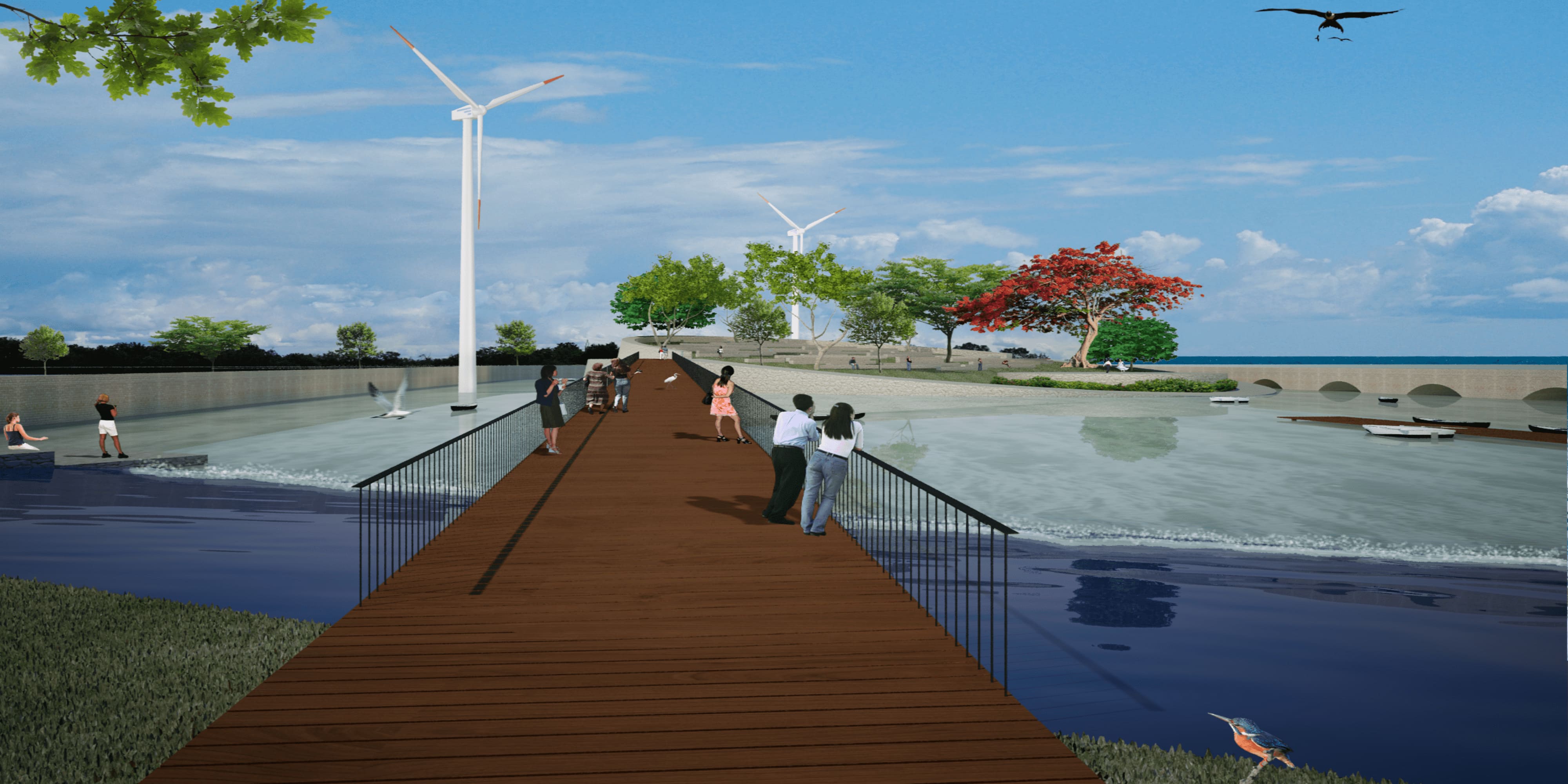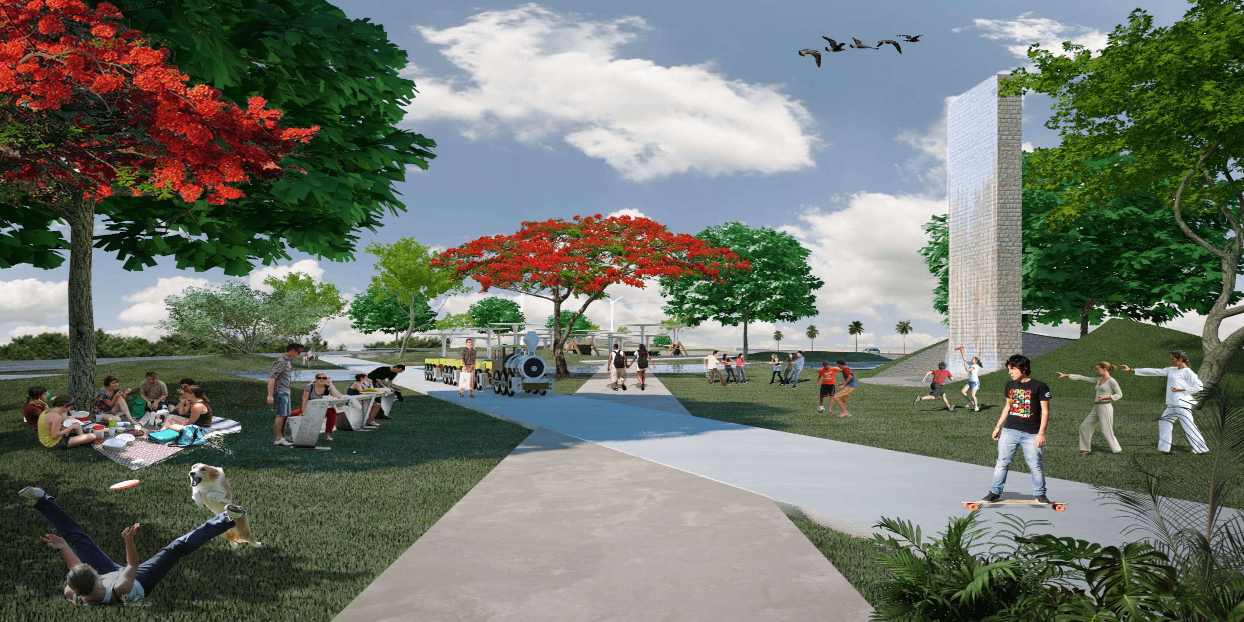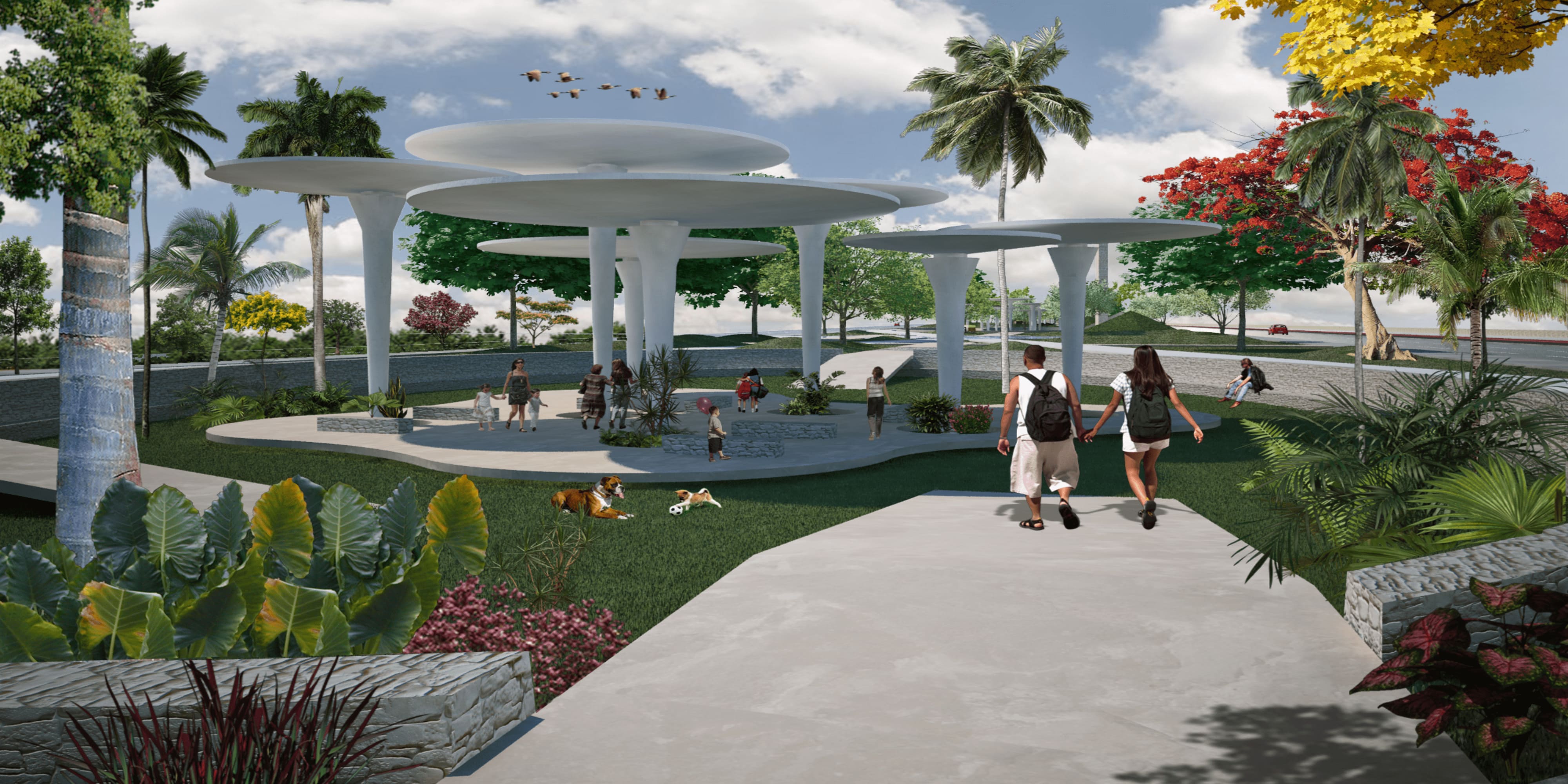 Proposal based on gaining ground to the sea and thus create a place of recreation by creating different environments, including a concert venue, lake for rowing, park and stelae illuminated with projectors for the dissemination of tourism in the state of Campeche.
