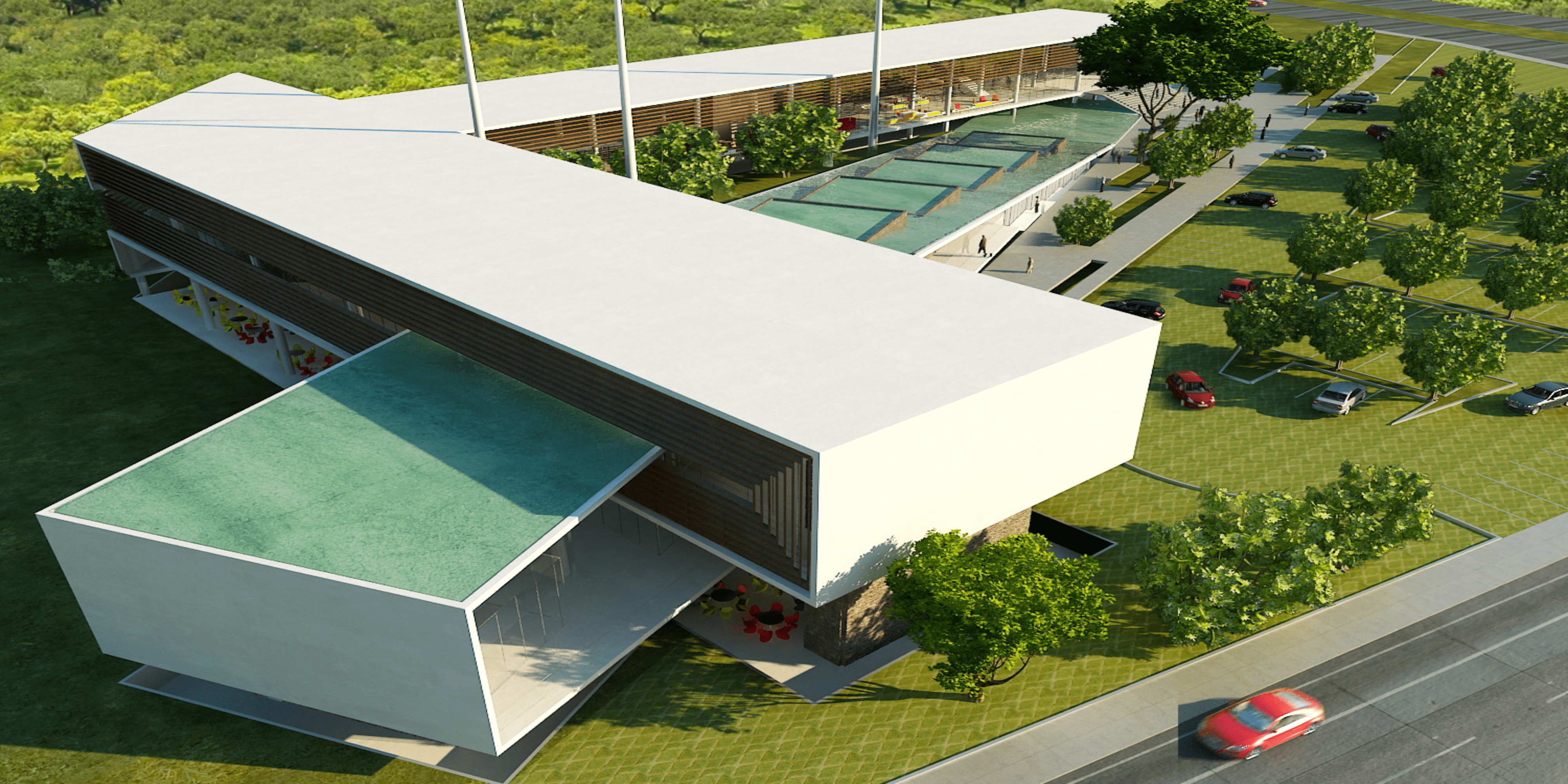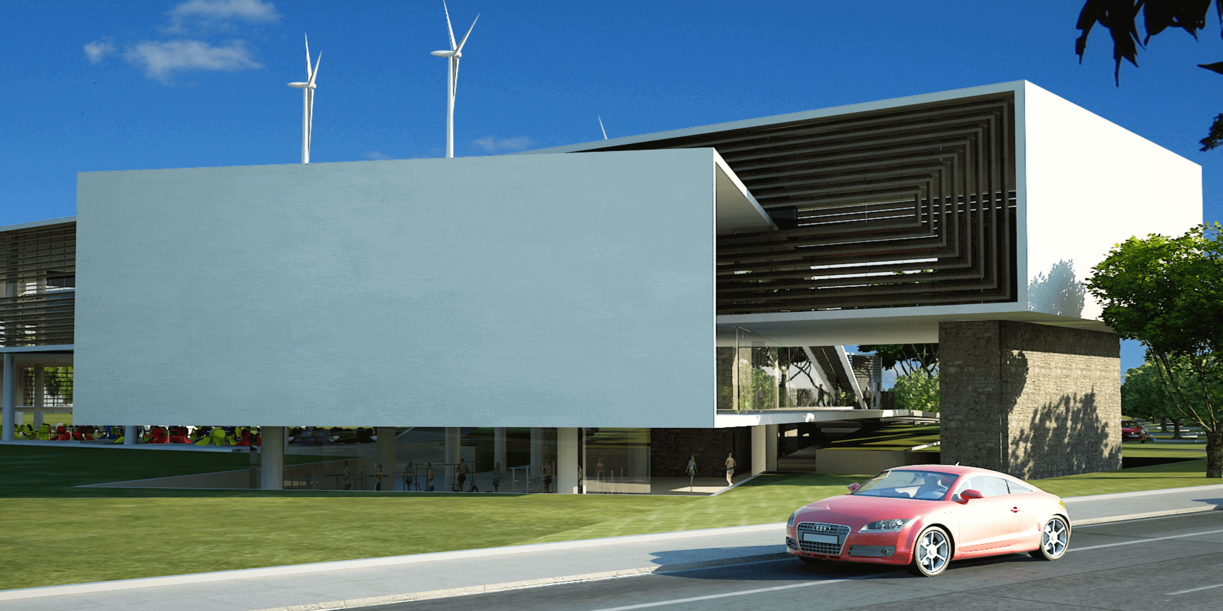 Corporate office based on the Möbius Ribbon (Moebius) is a surface with only one face and one edge, has the mathematical property of being a Non-directional object. Architects: Alejandro Medina.
