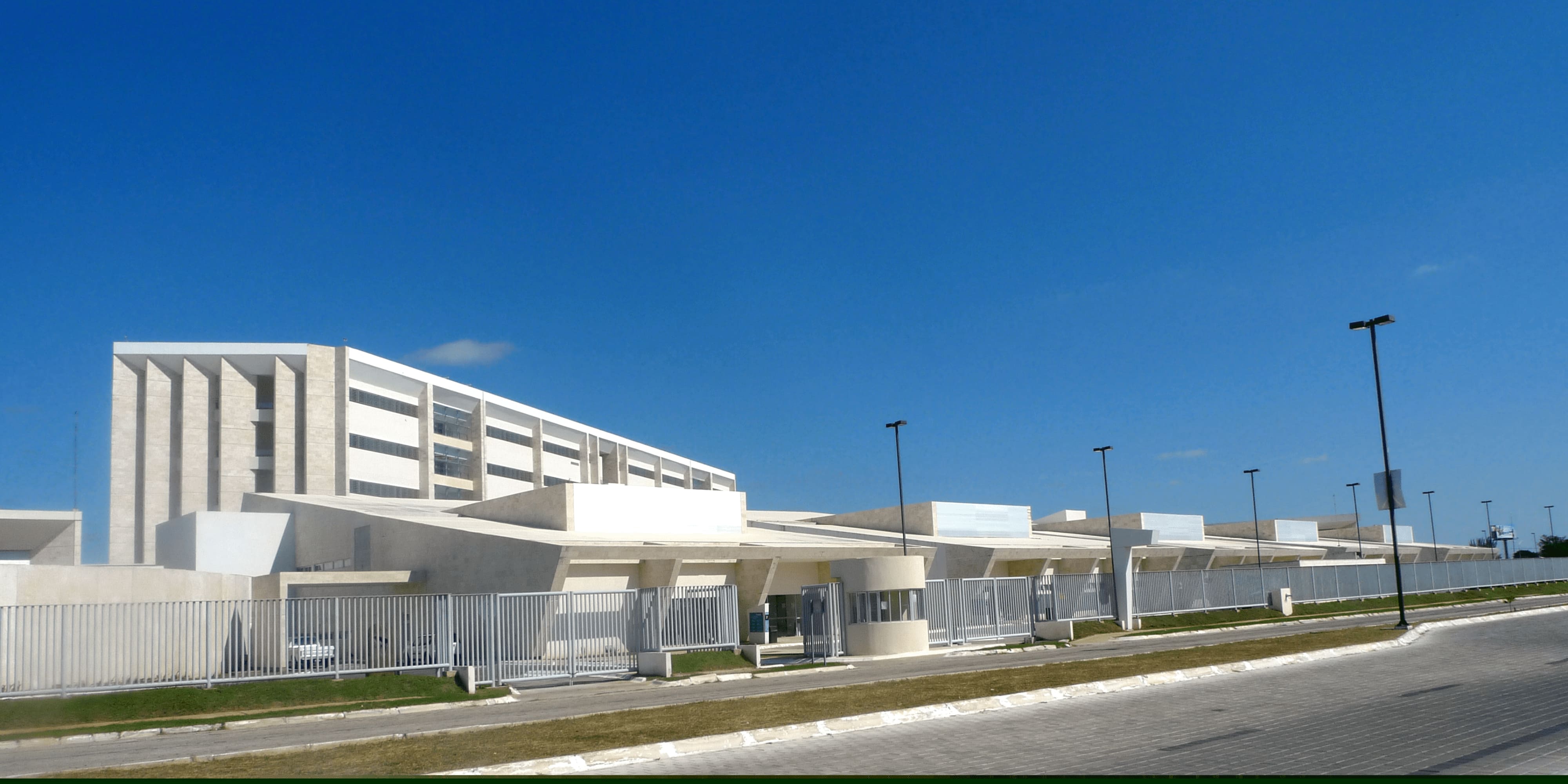 This large hospital of 45,000 m² is conceived with a triangular courtyard that organizes the three main blocks: operating rooms, imaging, laboratories on the one hand, administration and outpatient services on the other, and hospitalization services and beds on the other hand. The hospital rooms are oriented to the north where the sun does not enter and the operating rooms, imaging and laboratories to the north-east. The plastic used reminds us of Mayan architecture, since this hospital complex is located in Yucatan