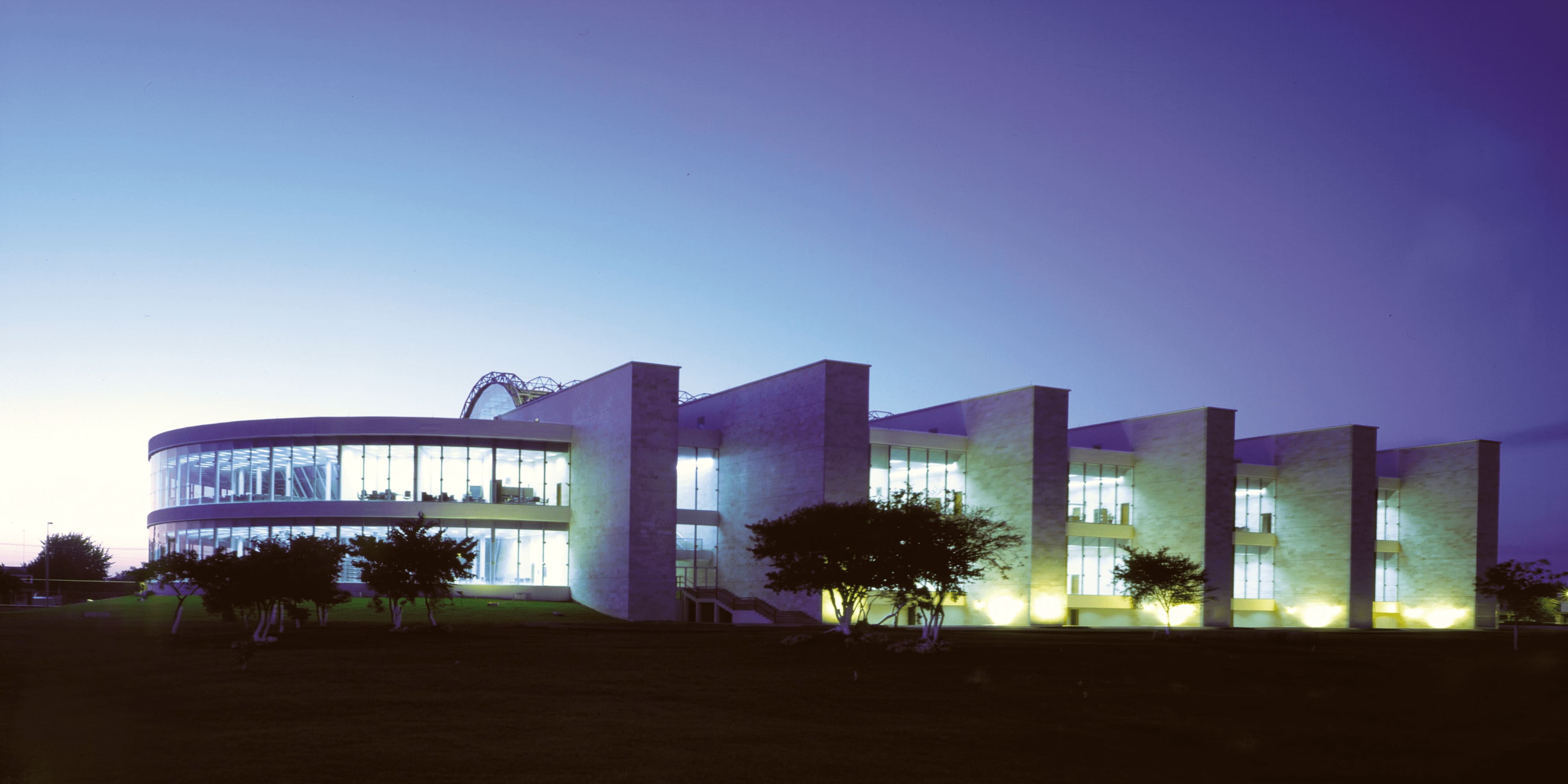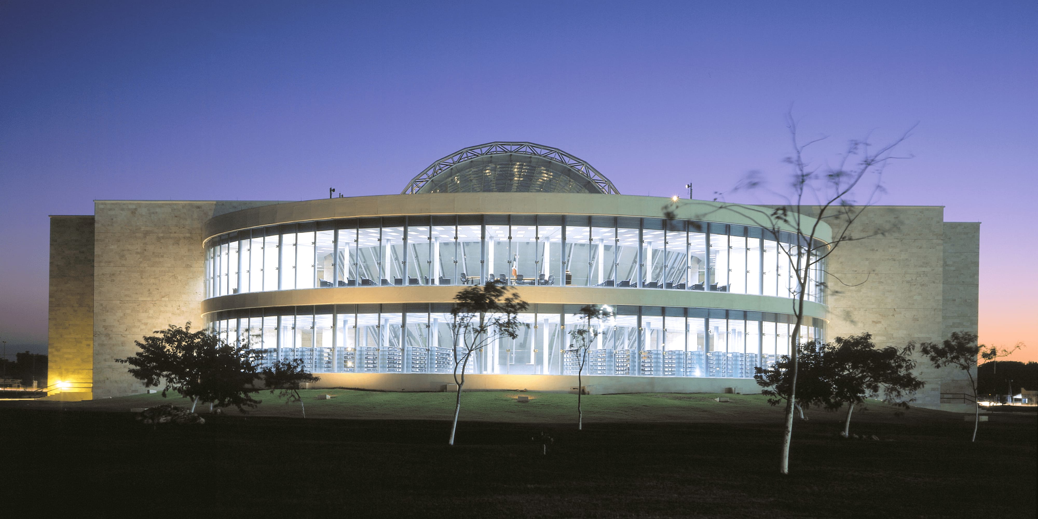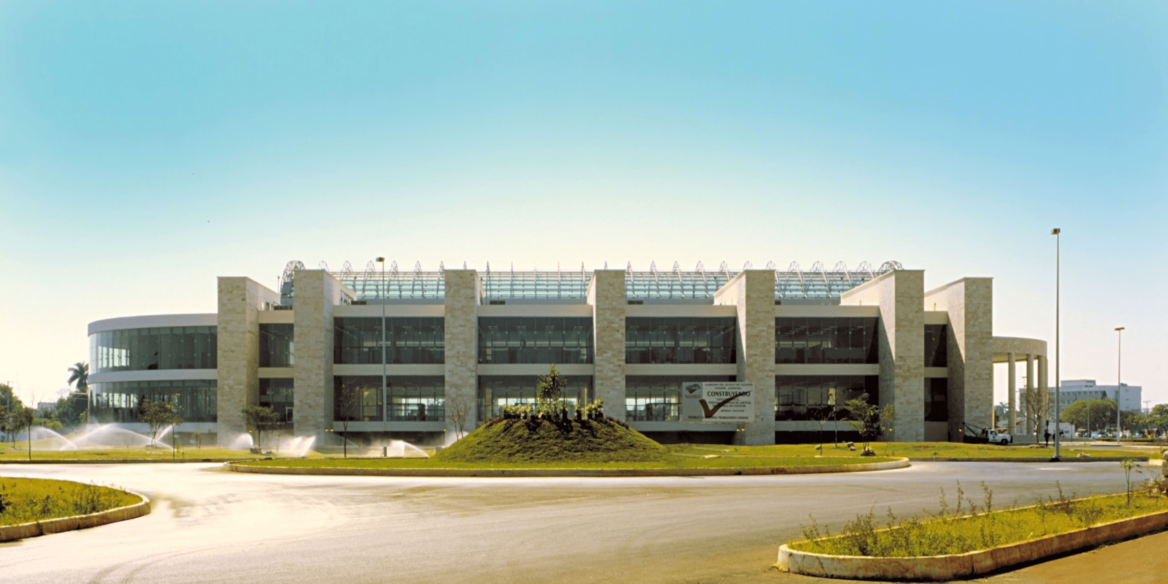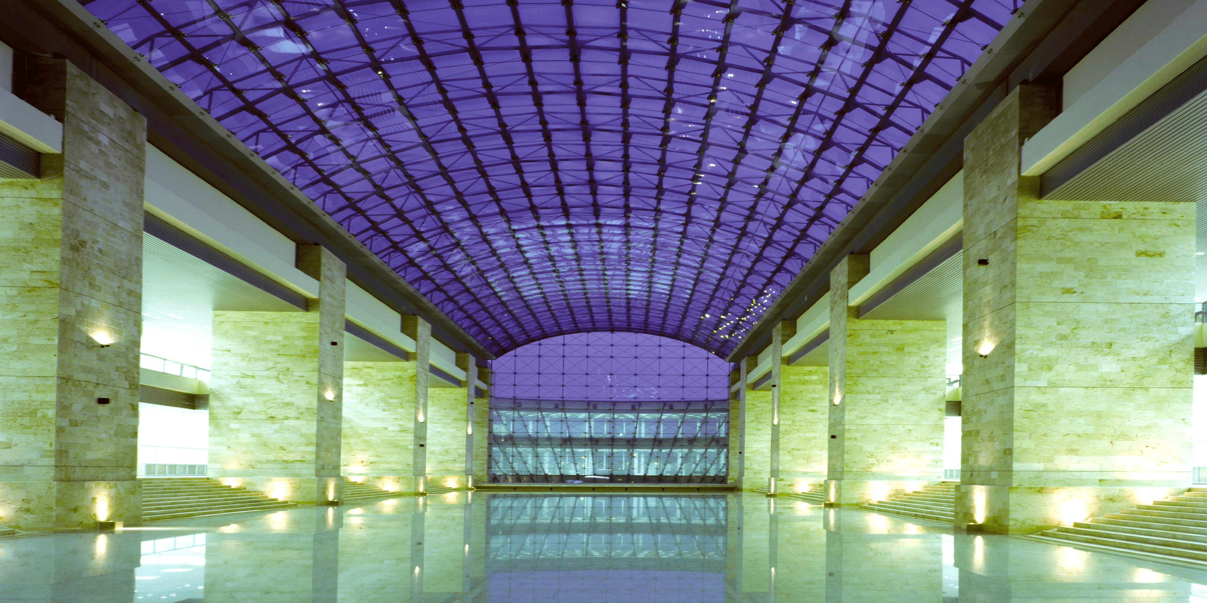 This building is crossed by a large central glass gallery that symbolizes the