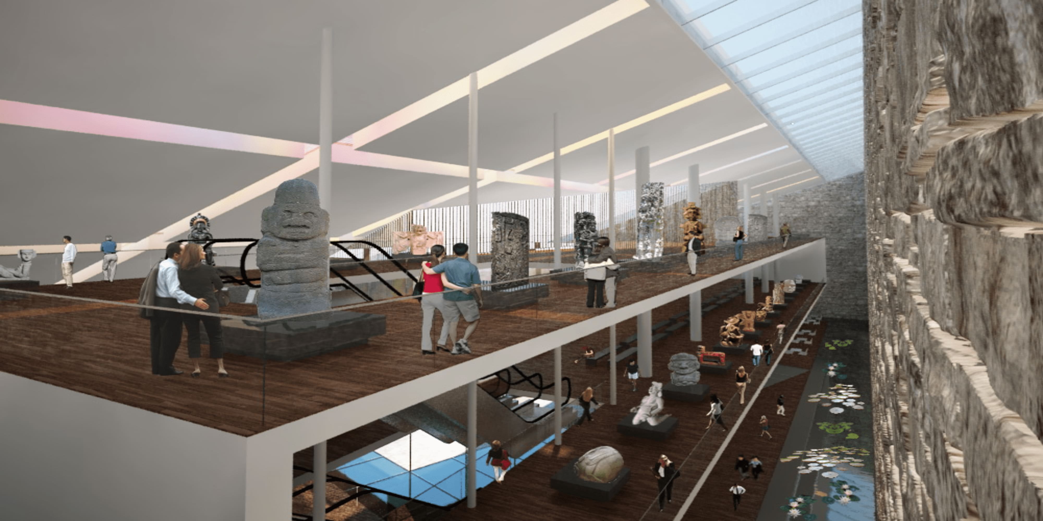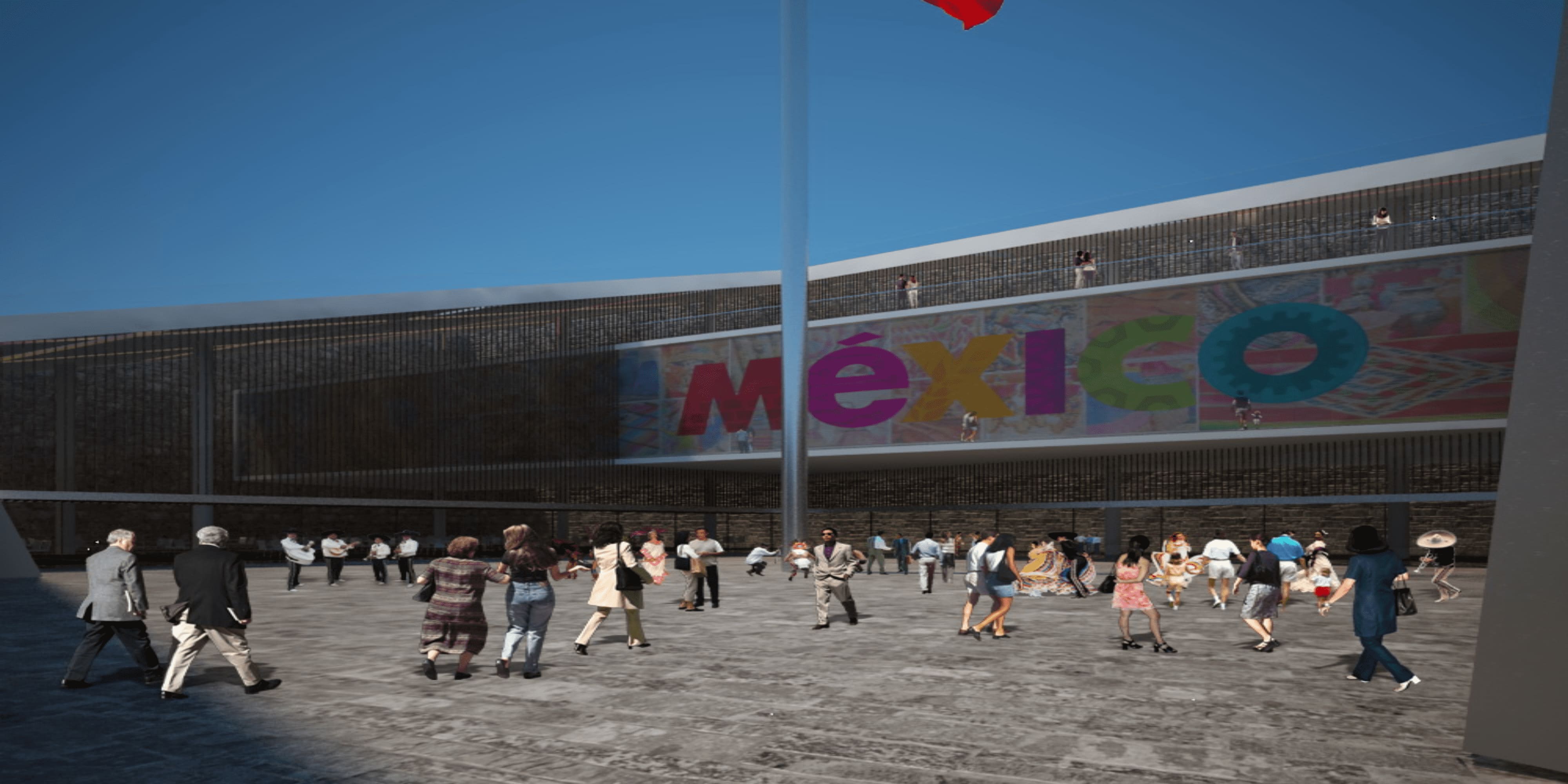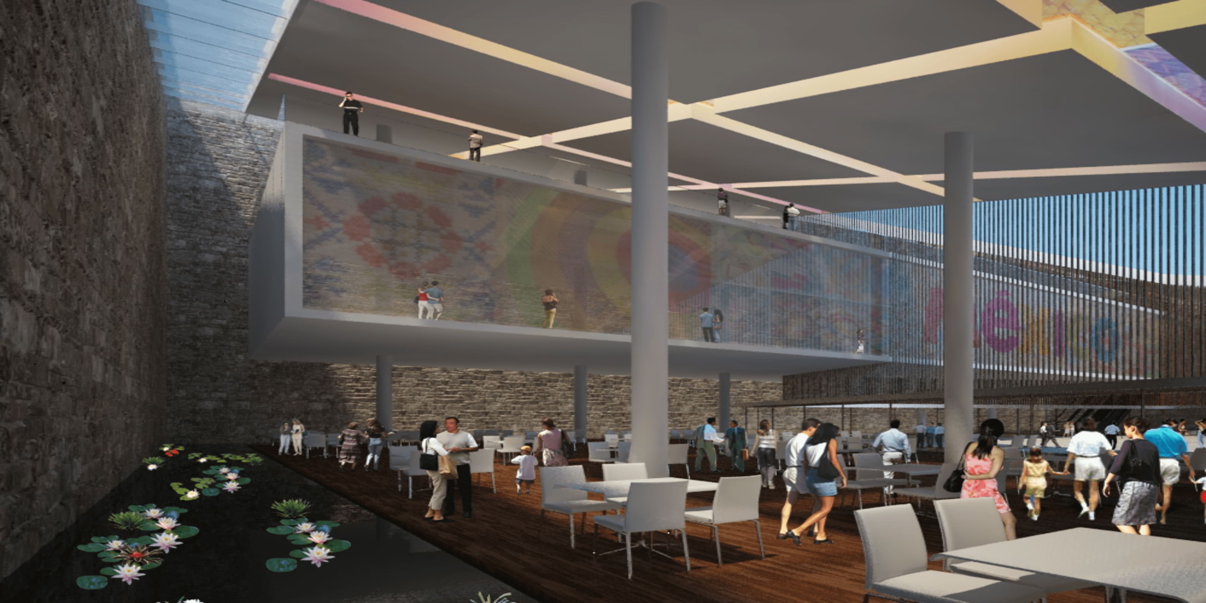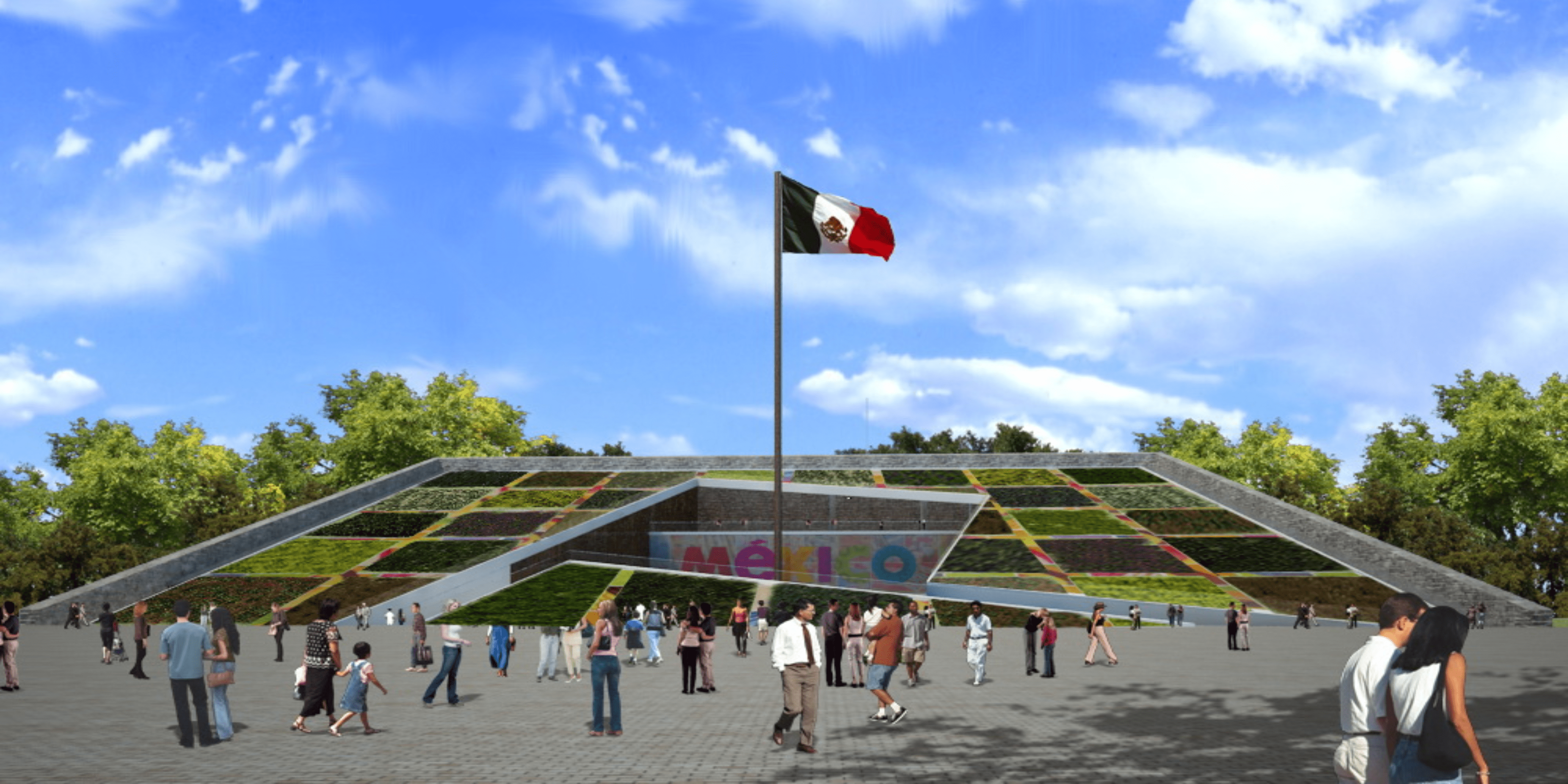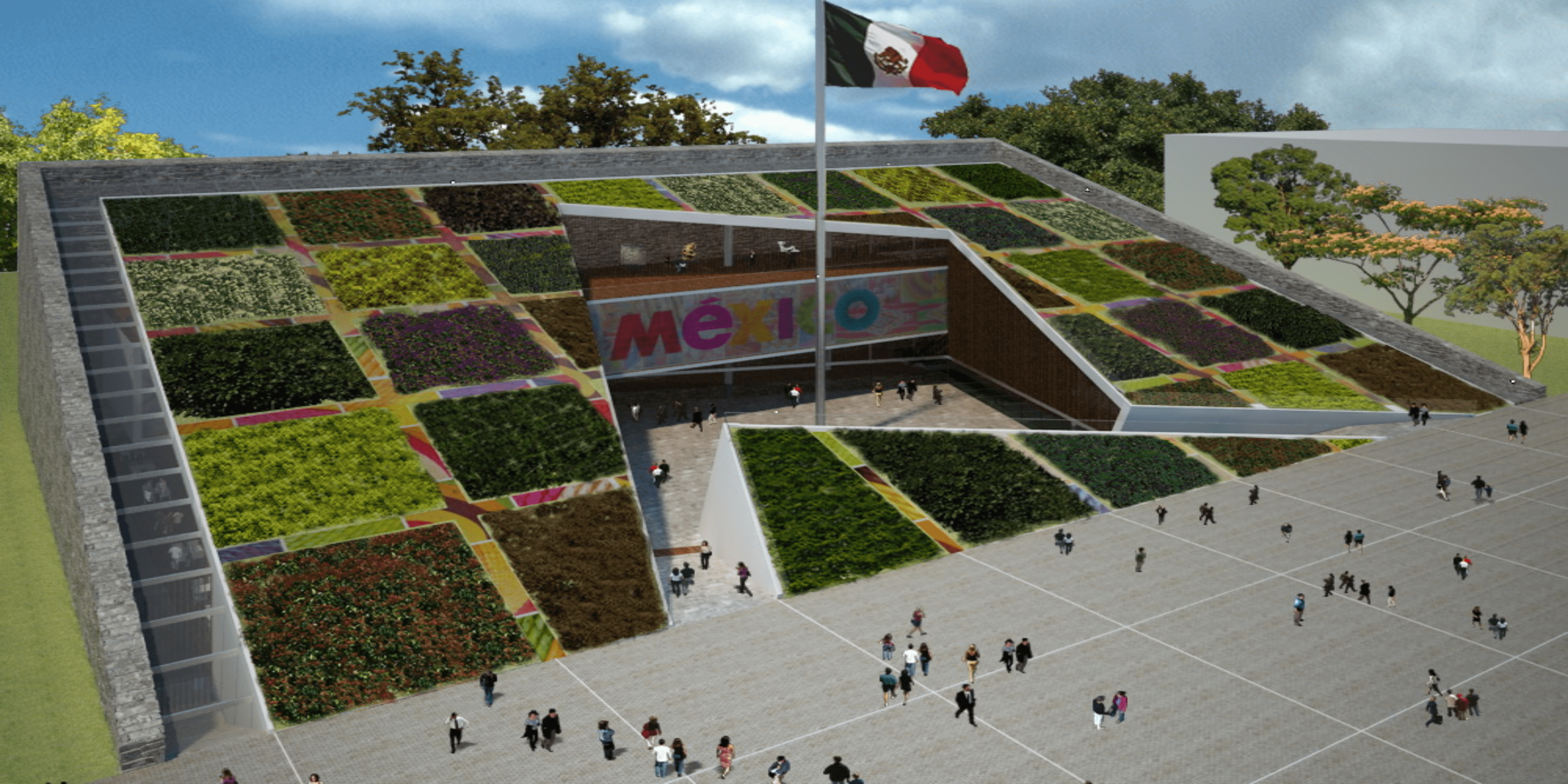 The pavilion was conceptualized with a edificio in Talud where the diversity of Mexico's flora was exhibited and in multiple spaces at different heights housing the culture in a edificio.