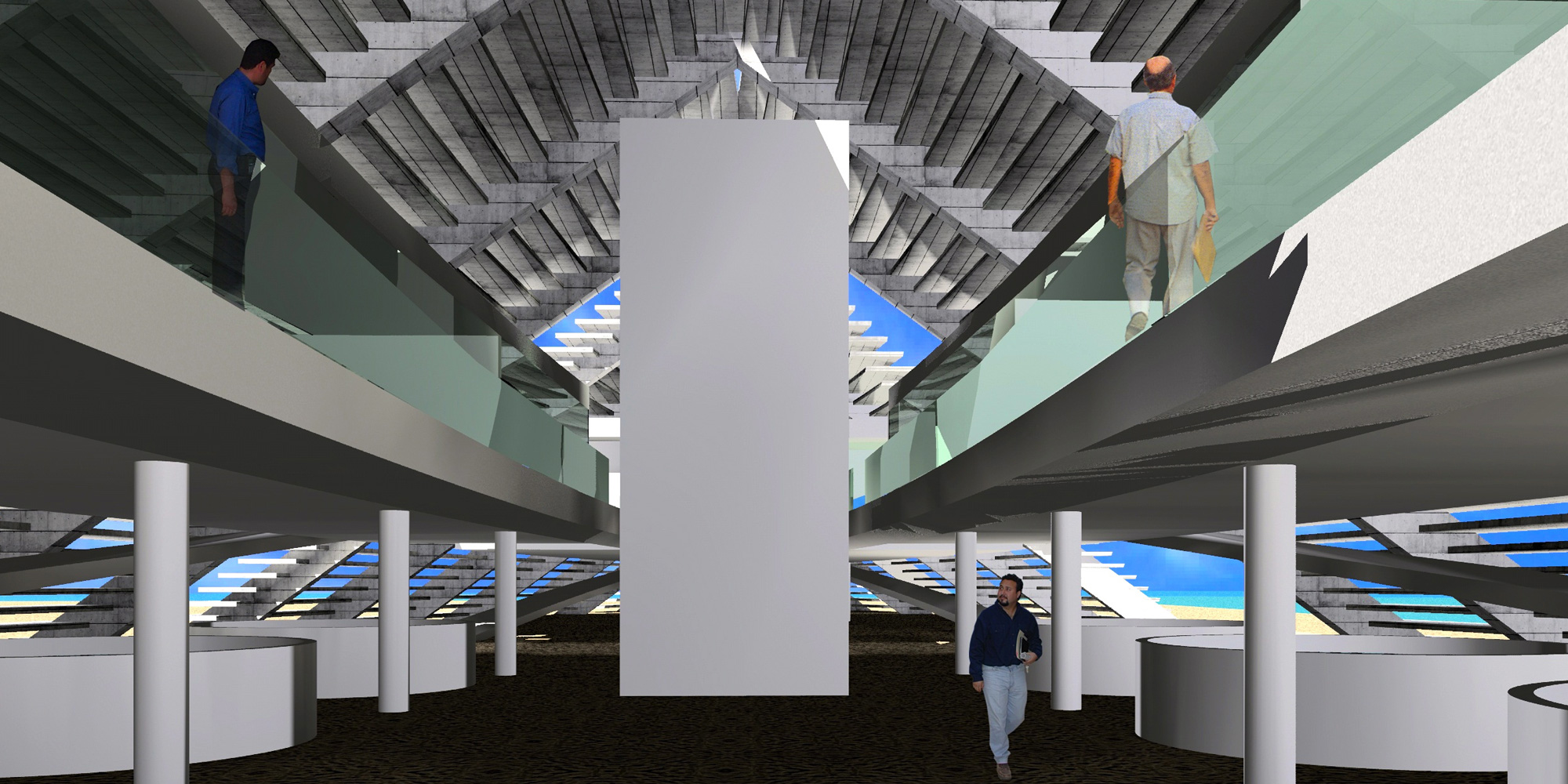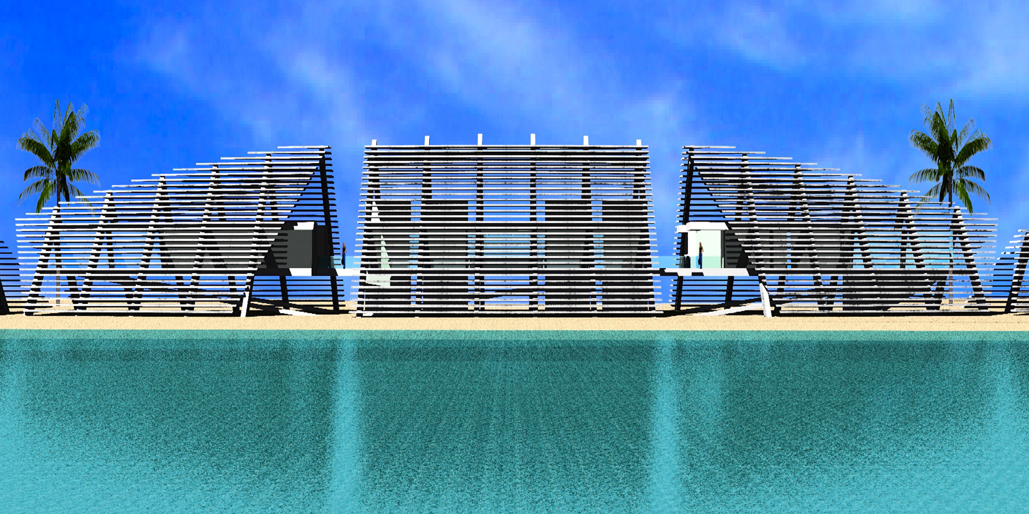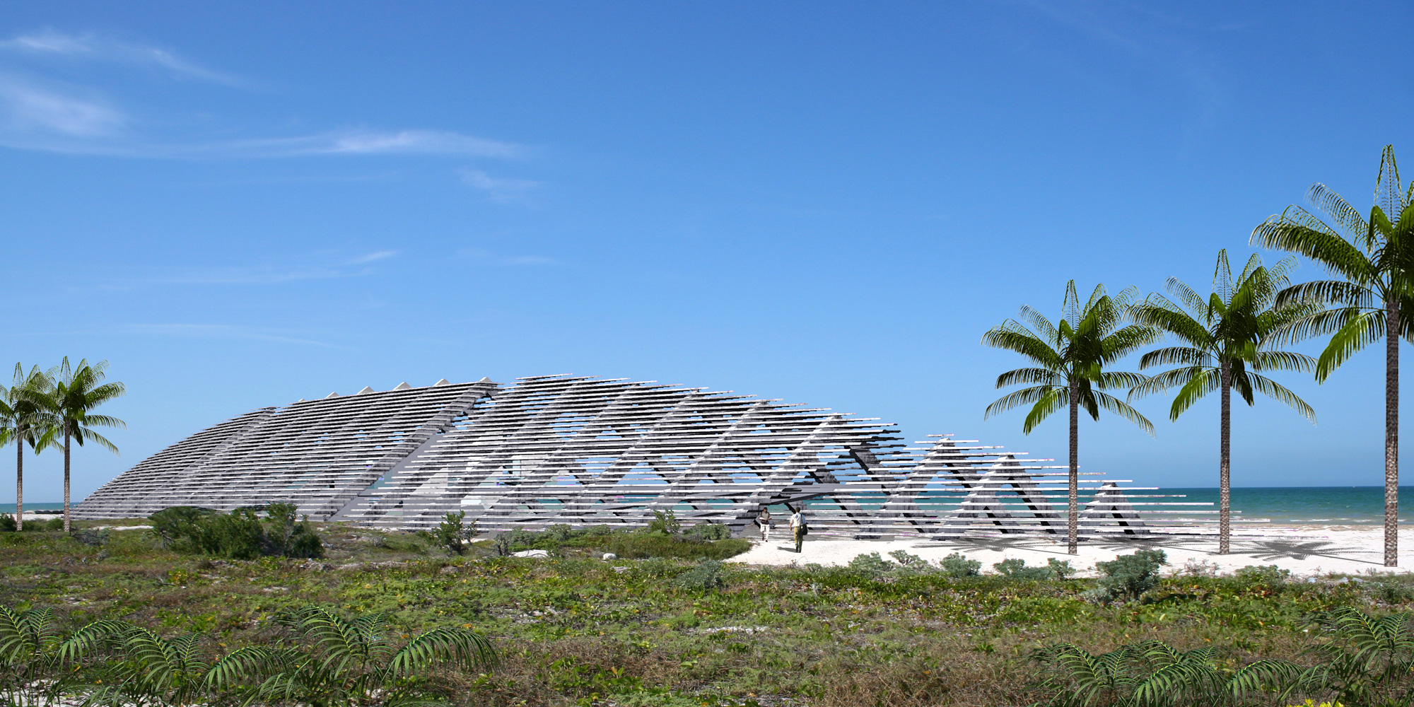 Para crear la estación marina del Cinvestav en Telchac, Pto. se conceptualizó dicha estación con una serie de edificios pequeños bajo una gran cubierta de parteluces de concreto que permiten la ventilación natural y la nula presencia de los rayos solares. Basándome en los cayucos de los pescadores que reposan sobre la arena. Los parte luces tienen la doble funcionalidad de ser utilizados a manera de gradas para eventos (Regatas).