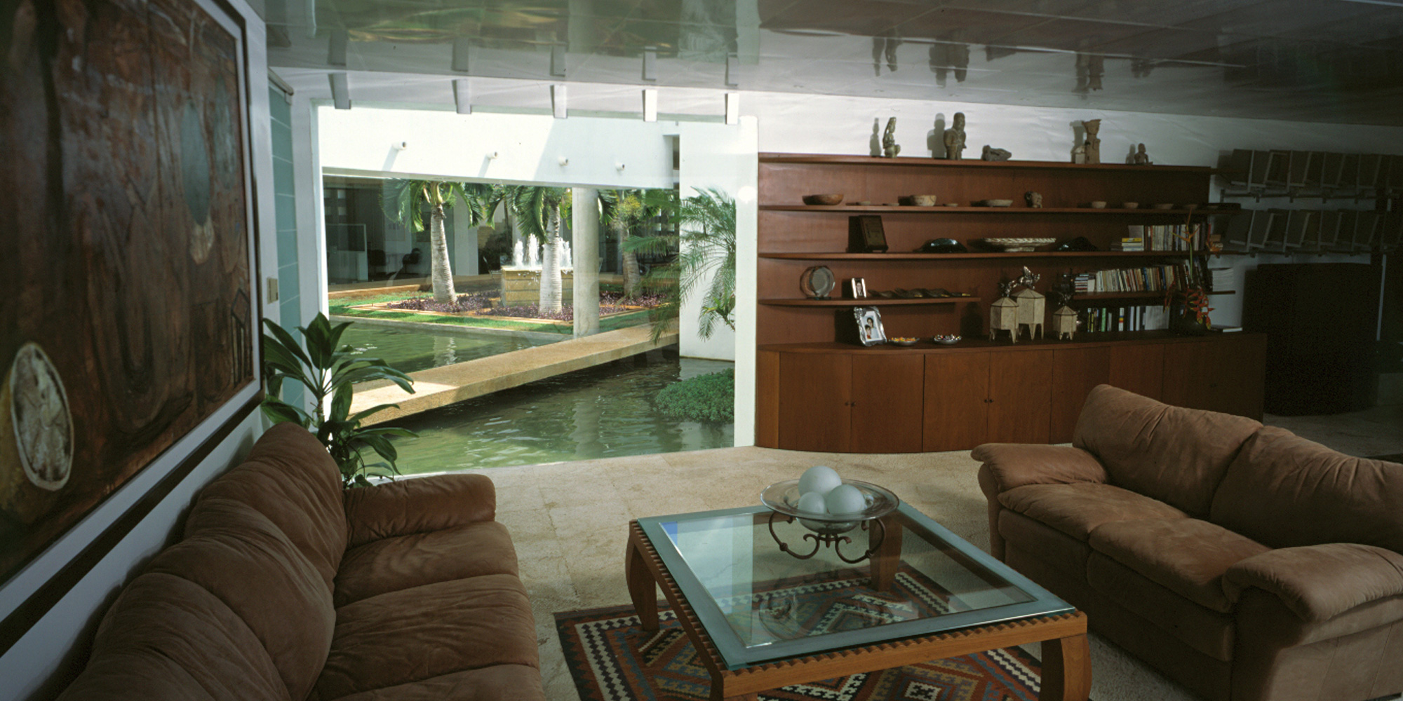 El ambiente interior y exterior se “funden” en uno solo y así lograr estar en una casa de playa en Yucatán. Se usa el color para expresar nuestra cultura. Tanto el mobiliario como el arte, refuerzan el ambiente informal y práctico con que se vive frente al mar y se recurren a temas como las pitahayas fruta yucateca que se da especialmente en verano, cayucos pescadores, fauna marina el tema del gran cuadro central.